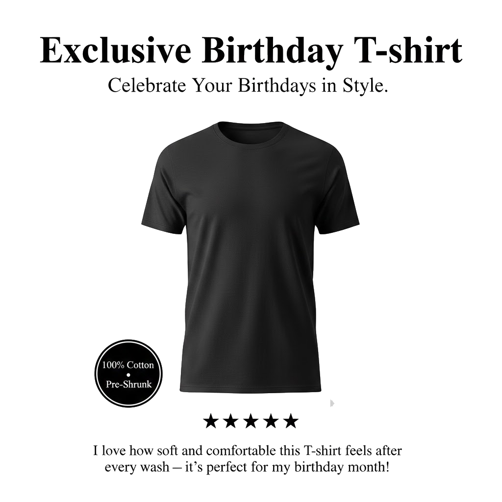 Stand out on your special day with comfort and style—feel confident in every stitch. Celebrate your Birthday in a tee designed just for you.